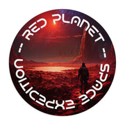 A round mouse pad featuring a Red Horizon Mouse Pad, bringing the cosmic adventure of a distant planet to your fingertips. Perfect for adding a touch of adventure to your workspace.